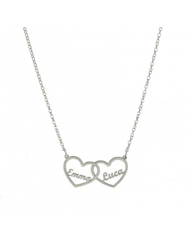 Collana maglia Rolò diamantata con centrale a lastra Due Nomi in Cornici Cuori
