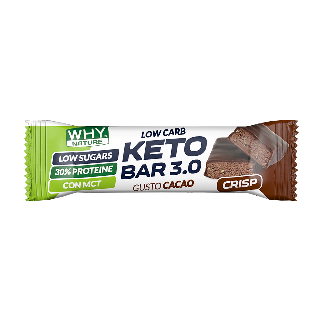 Keto bar 3.0 è una barretta a basso contenuto di zuccheri e ad alto contenuto di fibre e proteine (30%)