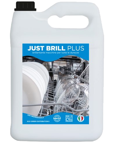 Eco Green, Pulizia e Servizi – Just Brill Plus, Brillantante per Lavastoviglie Professionali – lt 5 x 1 pezzo