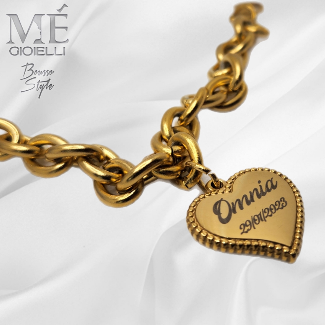 iL Bracciale Catena Grande Cuore Puntinato è in acciaio free nichel personalizzabile.