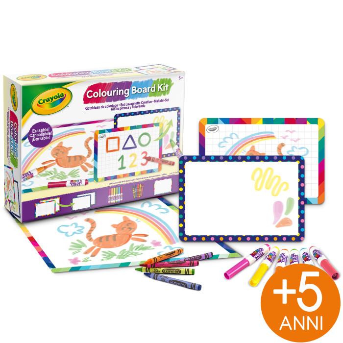 - Set educativo e creativo che include 2 lavagnette bianche a doppia faccia da utilizzare con i pennarelli Colora&Ricolora e i pastelli a cera ultra lavabili