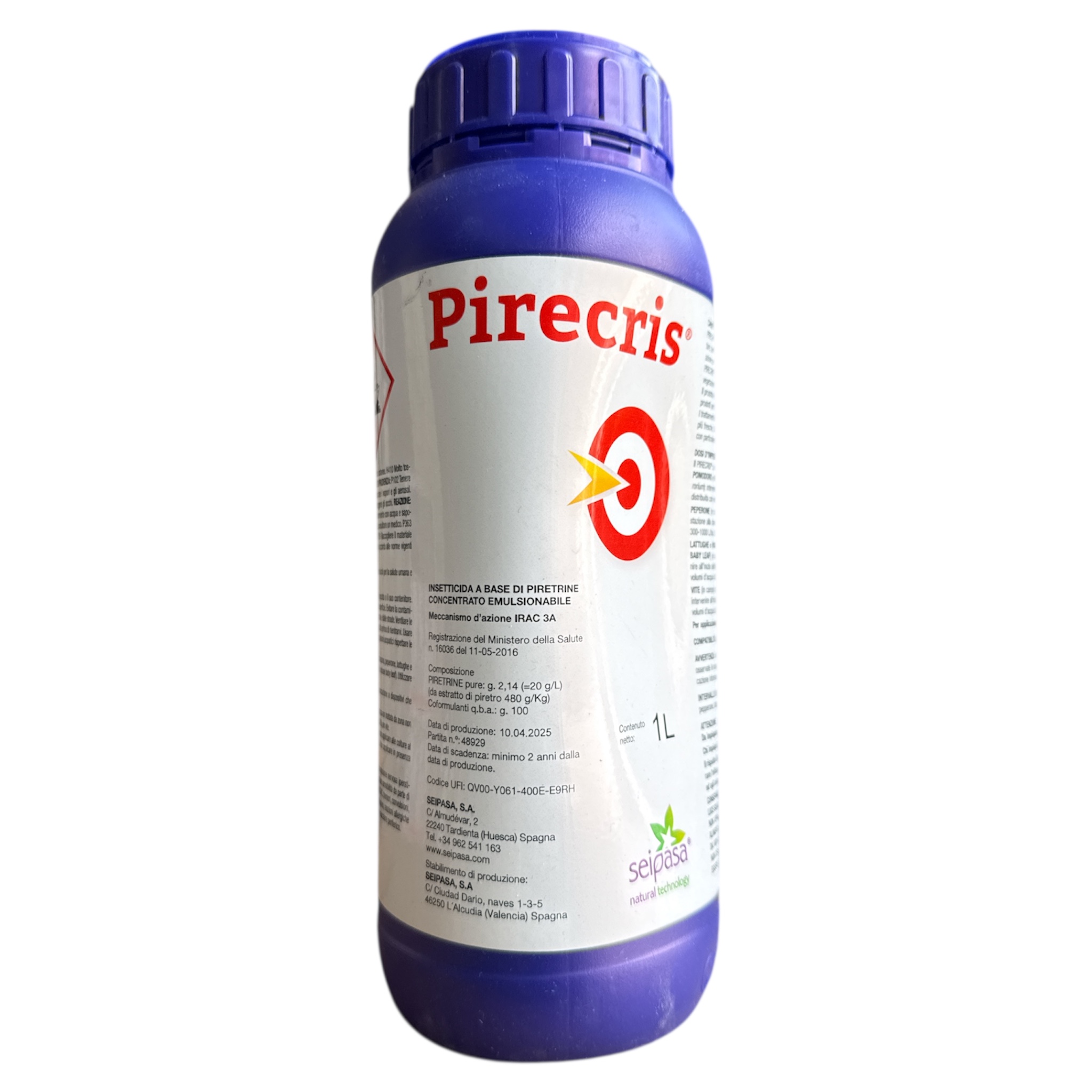 Pirecris è un insetticida agricolo per il controllo dei parassiti. Il suo potente effetto d’urto o knock down provoca la rapida eliminazione di afidi, mosca bianca e cicaline. Pirecris è sviluppato con una formulazione unica ed esclusiva e ingredienti naturali al 100% per ottenere la massima efficacia sia in campo aperto che in serra. Il 100% della formulazione è stata studiata per agire come materiale attivo con effetto insetticida.