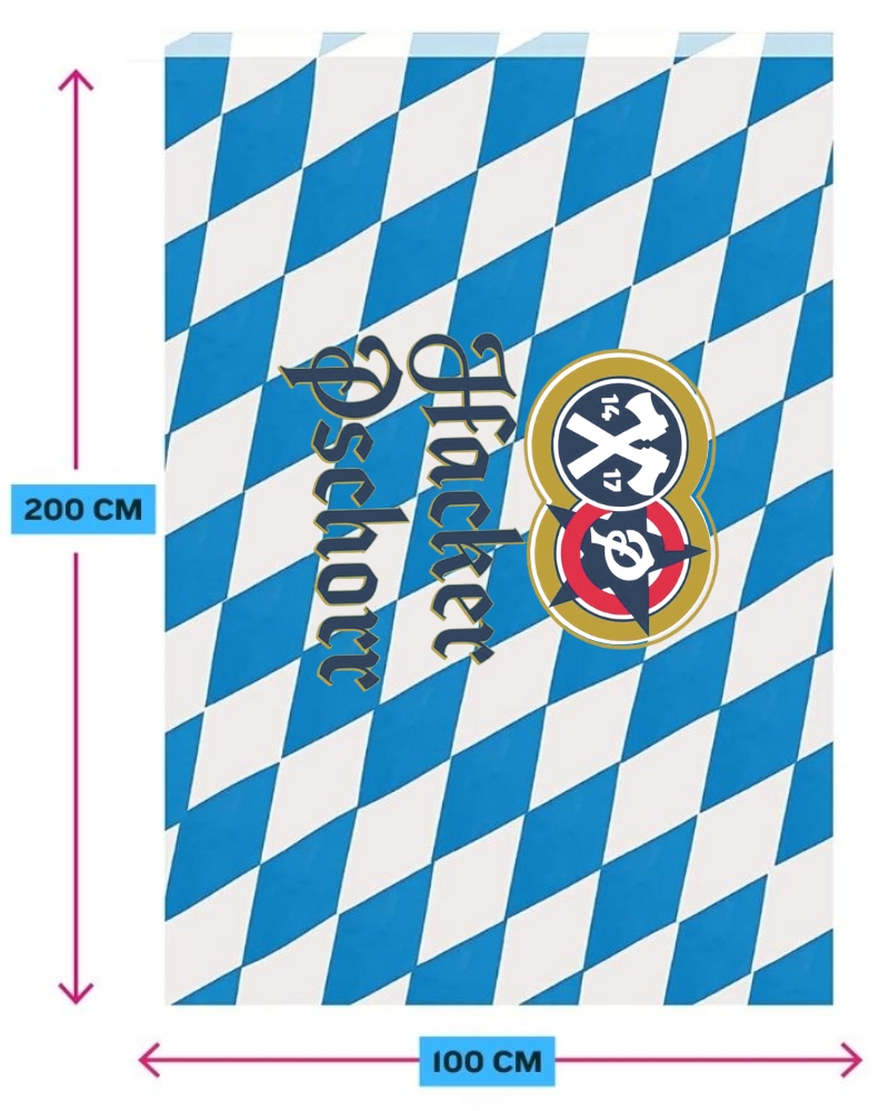 Stoffa a fantasia bavarese Hacker Pschorr con rombi azzurro chiaro, 200 cm di lunghezza e 100 cm di larghezza. Ideale per realizzare il tuo personale Oktoberfest. Circa 2m al pezzo, ritaglio con simbolo Hacker Pschorr centrale.