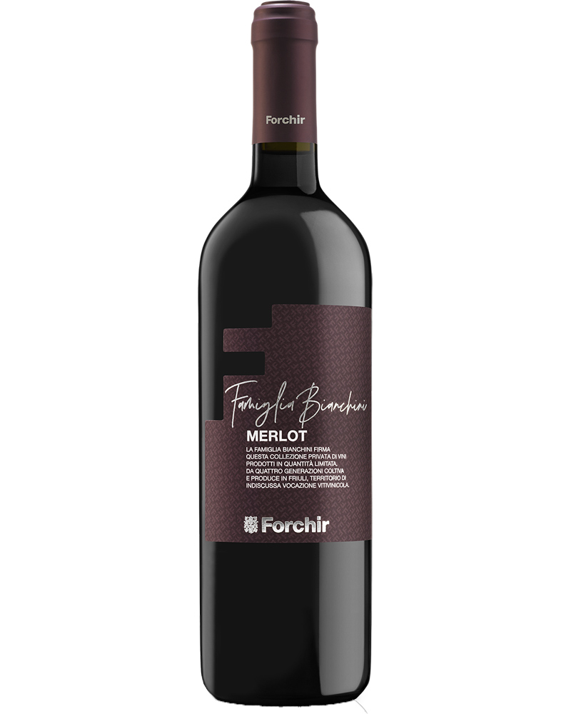 Vino rosso Merlot DOC di Forchir in edizione Famiglia Bianchini, prodotto in Friuli da uve Merlot. Profumo intenso e fruttato con note di pepe e caffè. Gusto equilibrato e morbido perfetto per salumi, formaggi e arrosti.