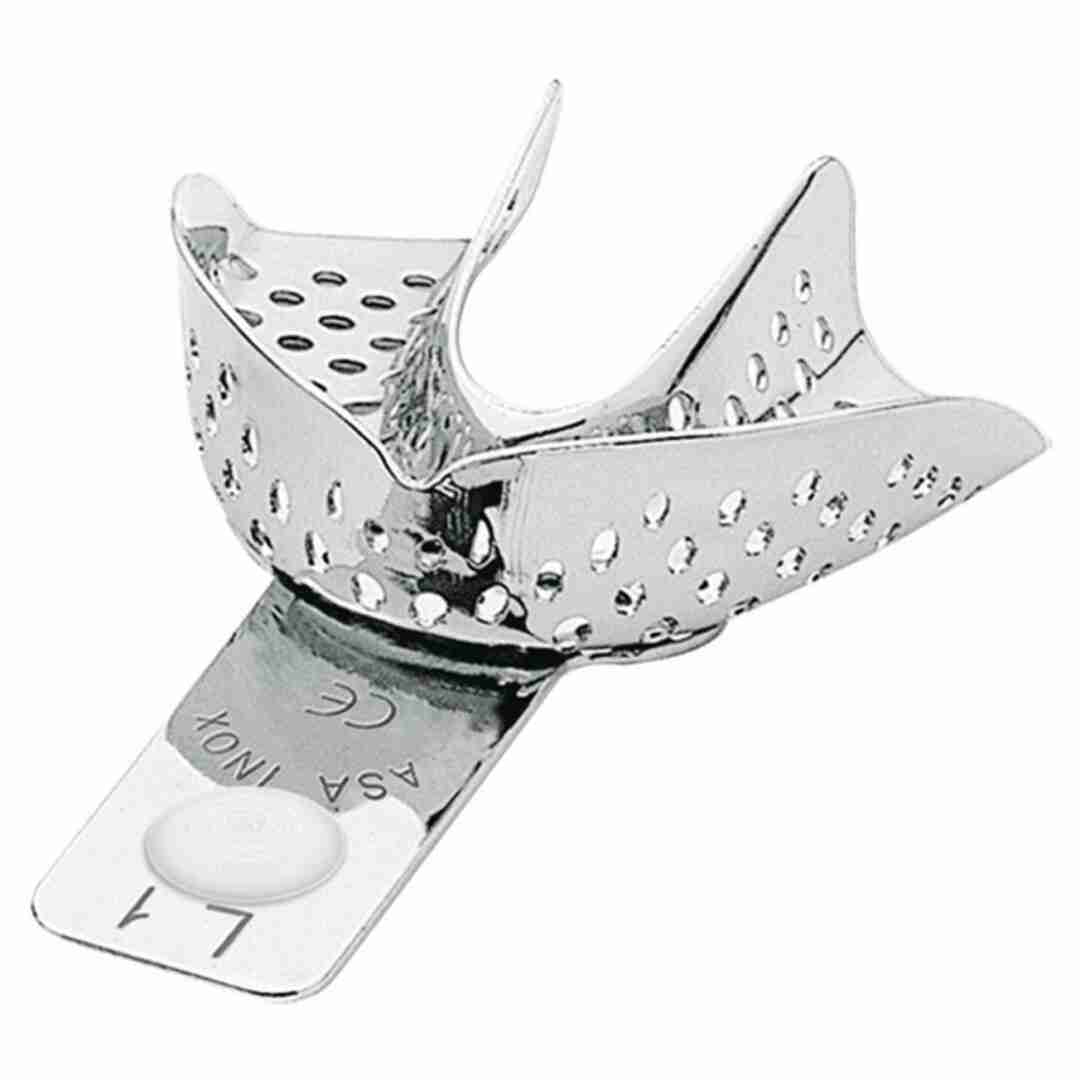 Portaimpronte inox, forato, disponibili in misure 6 inferiori (L) , 6 superiori (U) e 6 parziali (L)