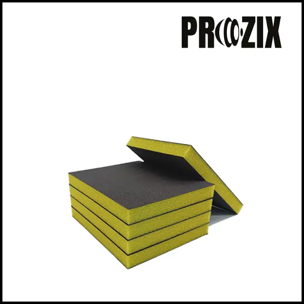 La spugna abrasiva consente un risultato di levigatura perfettamente uniforme. Il materiale espanso extra-morbido di Soft-Flex è ideale per la levigatura a secco ed a umido, garantendo la massima adattabilità alle forme ed il massimo confort. Pertanto, sarà facile raggiungere punti difficile come le griglie dei radiatori o gli incavi delle maniglie delle porte e dei paraurti. Infatti si mostra adattabile a tutti i contorni, smussi e profili. Il prodotto ha una doppia faccia per levigare da ambo i lati.